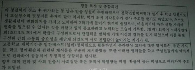 와....얼마나 마음에 안 들었으면 생활기록부에 저렇게.,...ㅋㅋ;;