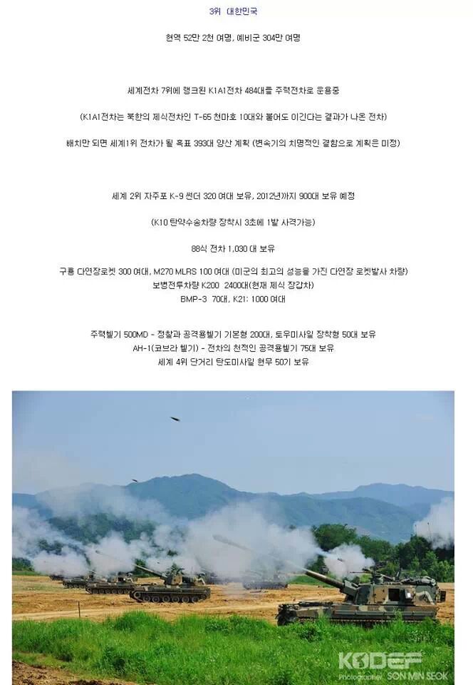 오 우리나라 군사력 생각보다 강하군요!!!!! 북한이 덤벼도 털겠죠??