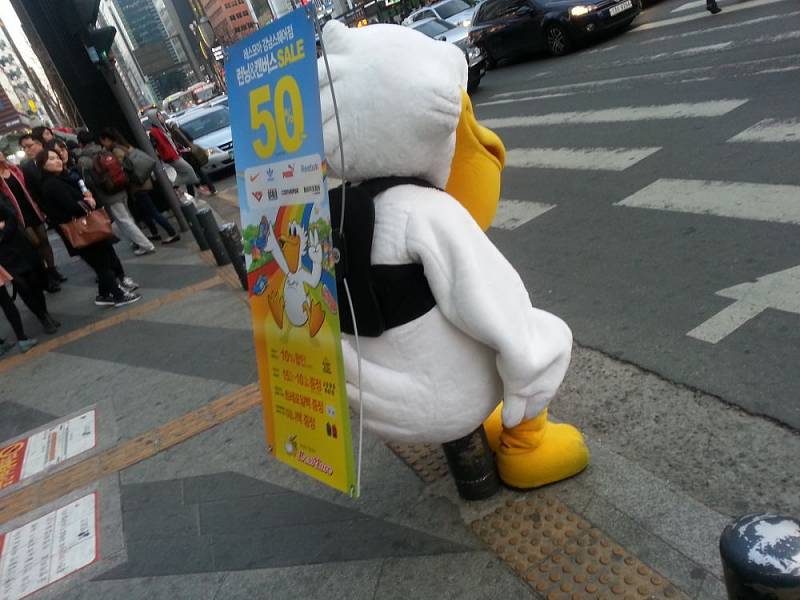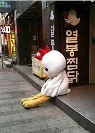 치킨집 오픈할떄.. 닭 인형옷 입고.. 알바 했던 기억이.. ㅠㅜ.. 처음엔 사람들이 많이 쳐다봐서.. 엄청 부담스러웠는데.. 시간이 지남에 따라.. 점점 익숙해지고.. 엄마랑 같이 지나가던 어린애들이 엄마~ 저거봐 닭이야! 라고 했을때 손까지 살짝 흔들어주는 여유 +_+ ! 근데 더운날에는 정말 현기증 나더라구요 ..숨 막히고..