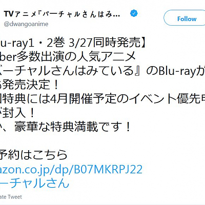 TV 애니메이션 '버추얼씨는 보고 있다' 블루레이 발매 소식
