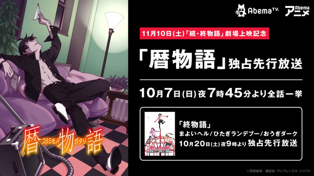 애니메이션 '코요미 모노가타리' 전 12화가 AbemaTV에서 방송될 예정
