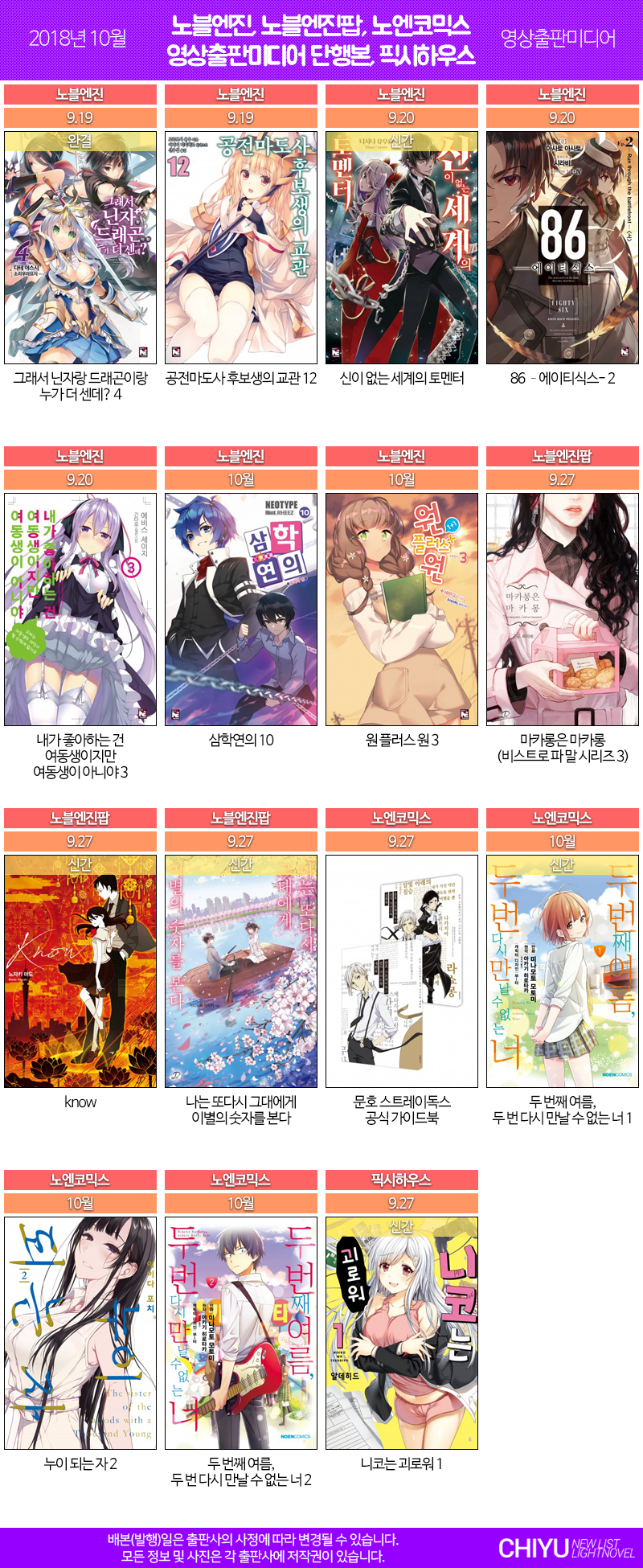 2018년 10월 라이트노벨 목록 : 10.2