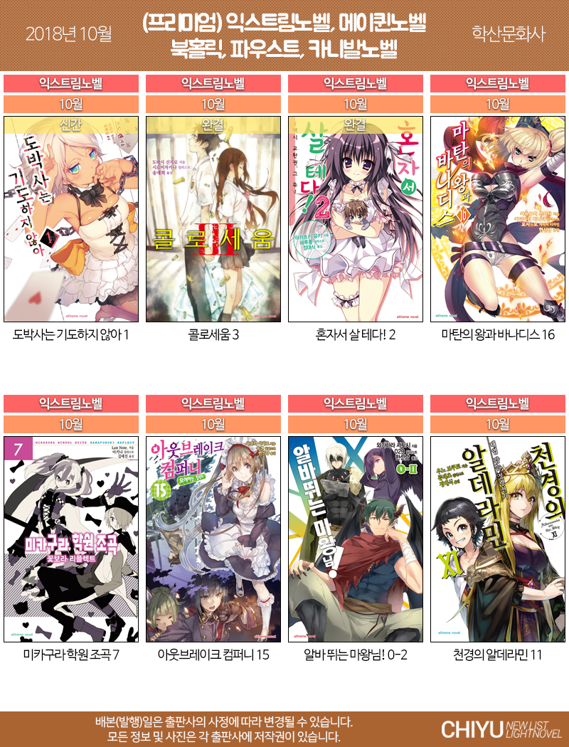 ※ 배본(발행)일은 각 출판사에 사정에 따라 변경될 수 있으며, 광고 및 티저의 표지일 경우 실제 배본(발행)되는 표지와 다를 수 있습니다.