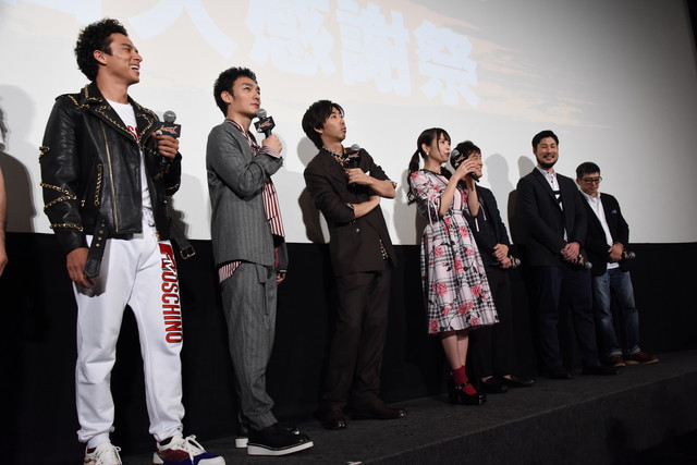 극장 애니메이션 '무타후카즈'의 개봉 첫날 무대 인사가 개최된 모습