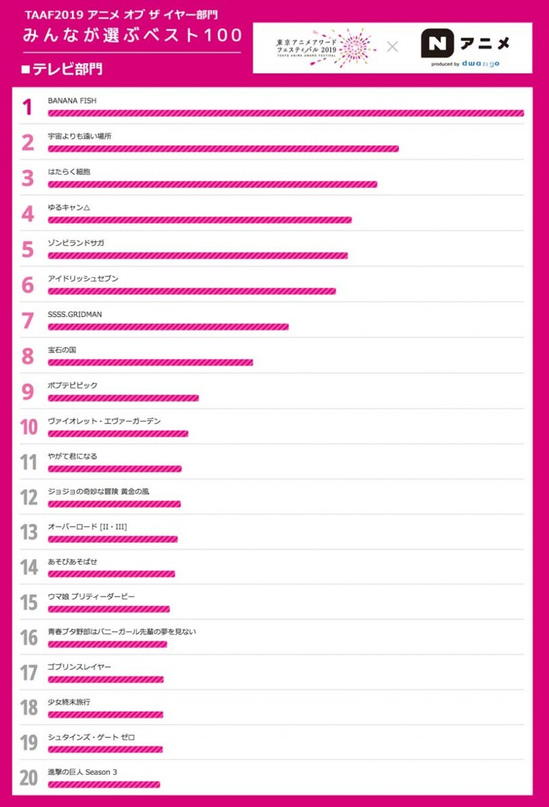 도쿄 애니메이션 어워드 페스티벌, 팬 투표로 선정된 베스트 100 발표