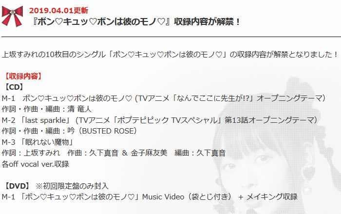 (출처: http://king-cr.jp/artist/uesakasumire/news/#190401)