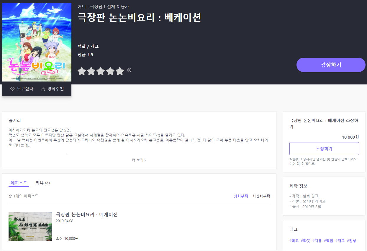1412 [라프텔] 『극장판 논논비요리 : 베케이션』 업로드 [애니] 작성일시 : 2019. 04. 08 (00:03) 조회 : 2,532 / 댓글 : 1 출처(링크) : https://laftel.net/item/39240 4추천 글쓰기스크랩 신고