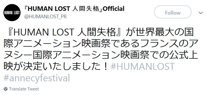 'HUMAN LOST 인간실격'이 안시 국제 애니메이션 페스티벌에서 공식 상영될 예정