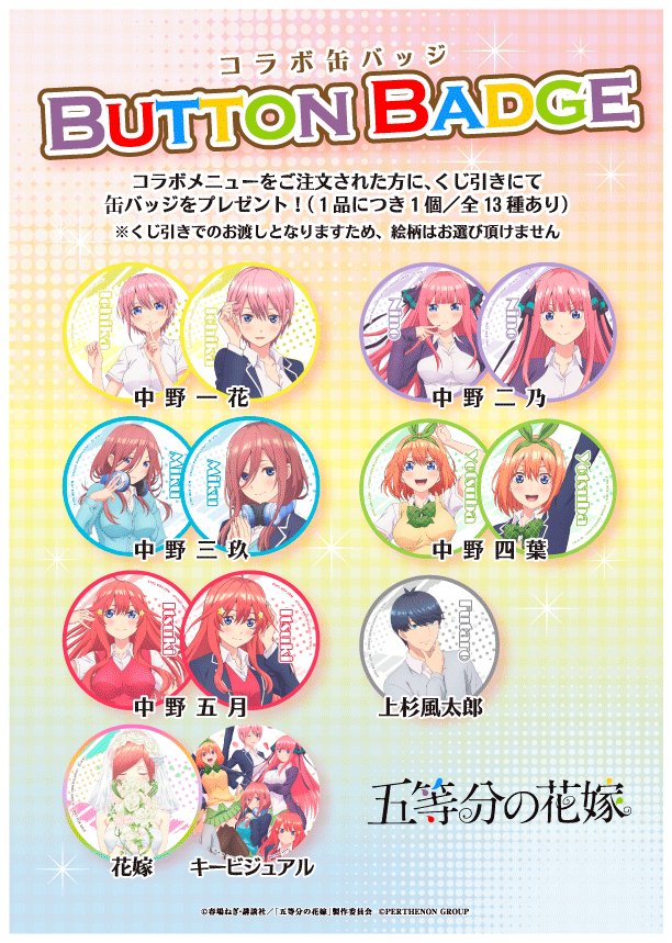 TV 애니메이션 '오등분의 신부' 콜라보레이션 카페 행사 메뉴에 대해