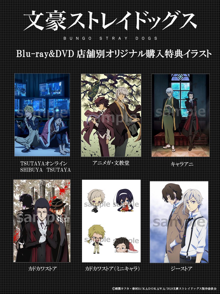 '문호 스트레이 독스' 제 3시즌의 블루레이 법인별 구입 특전 일러스트 샘플 공개