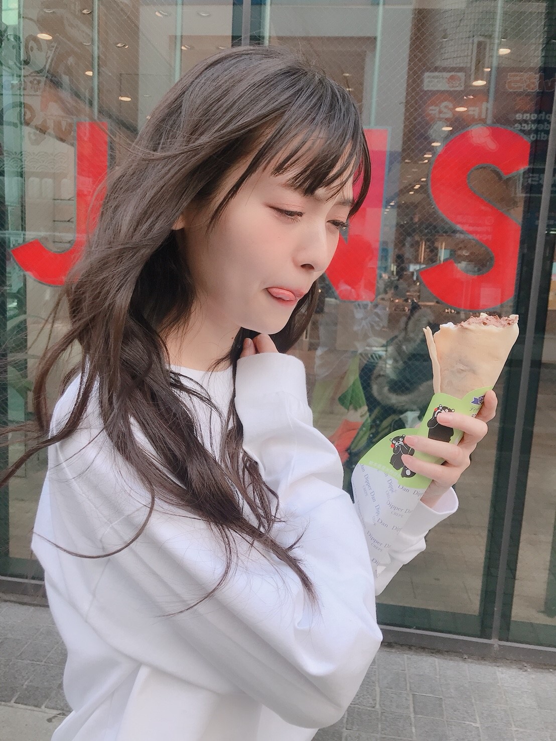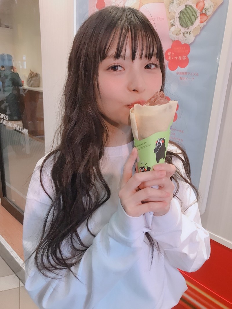 성우 우에사카 스미레가 라인 블로그에 올린 사진, 크레이프를 먹고 있는 모습