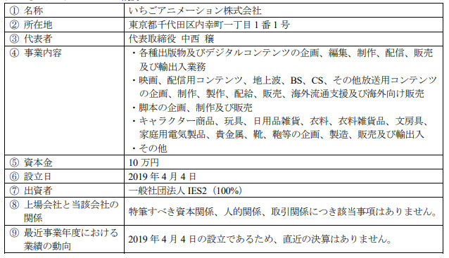 참고로, 또다른 기사에 올라온 '이치고 애니메이션'의 회사 개요에 따르면,