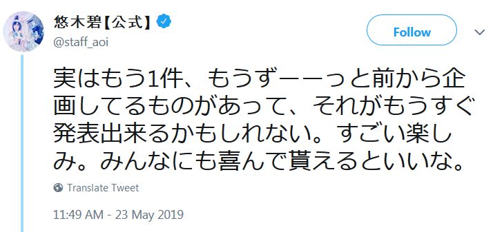 성우 유우키 아오이가 예전부터 기획하고 있던 무언가를 조만간 발표할