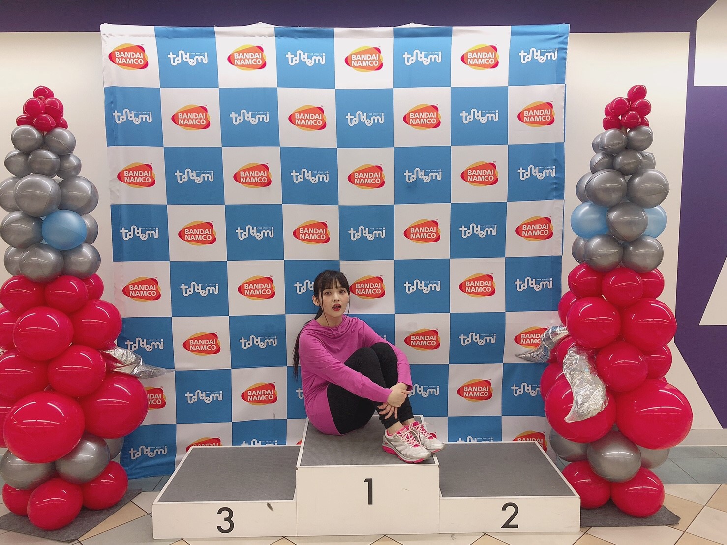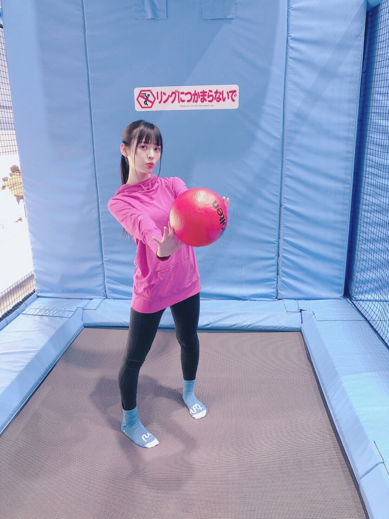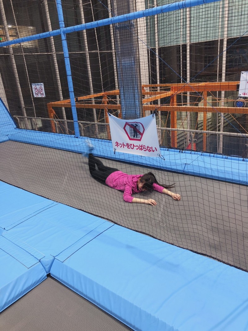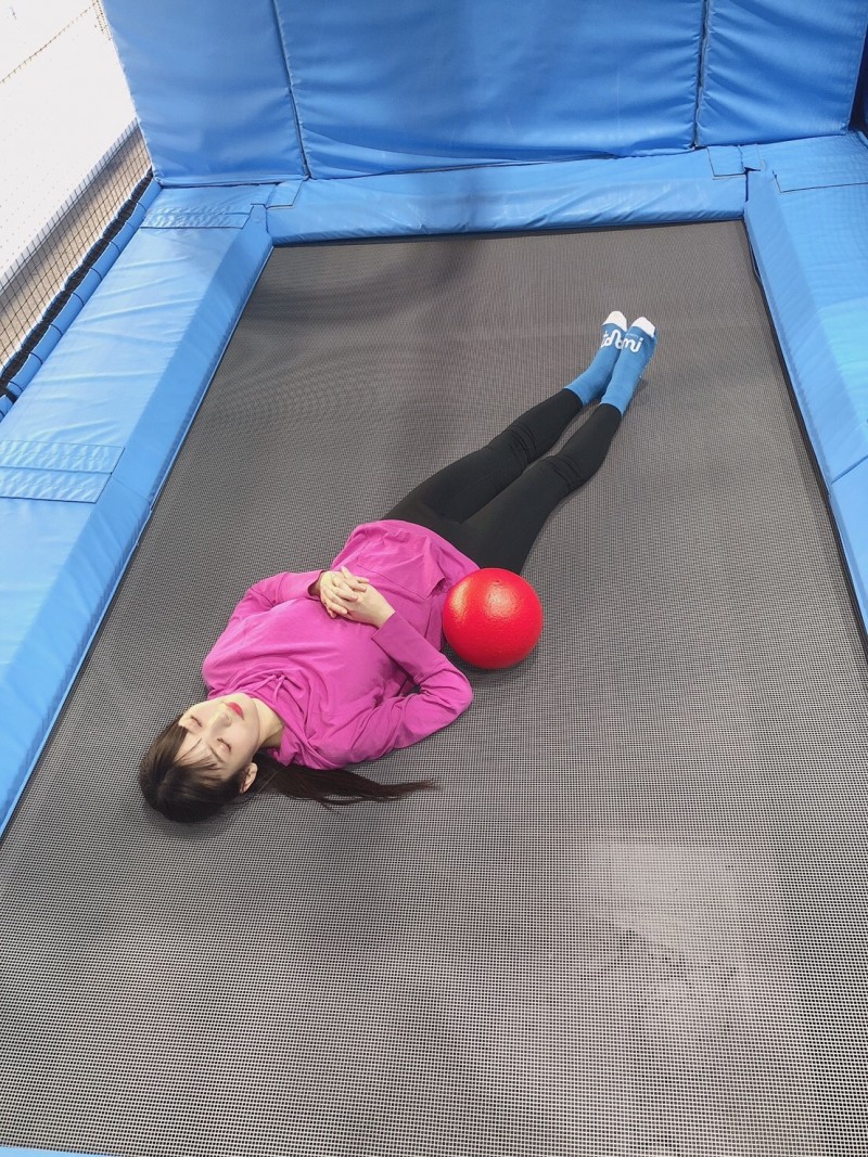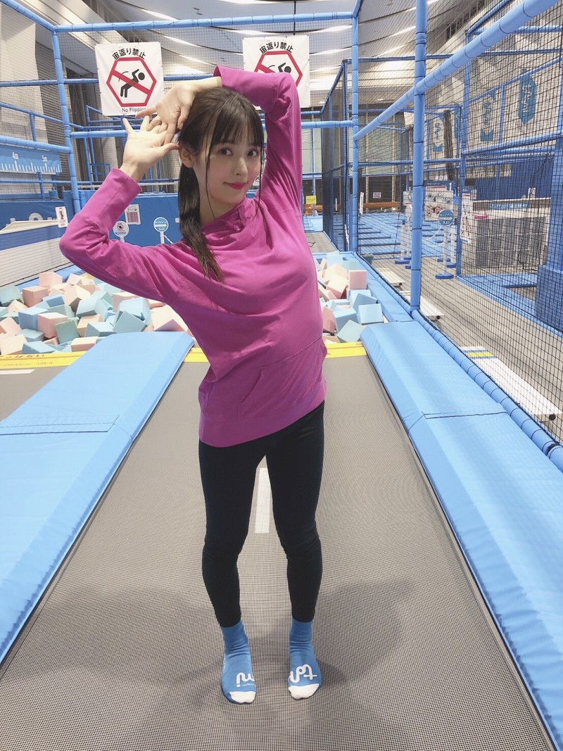 성우 우에사카 스미레의 사진, 트램펄린 체험을 하고 있는 모습