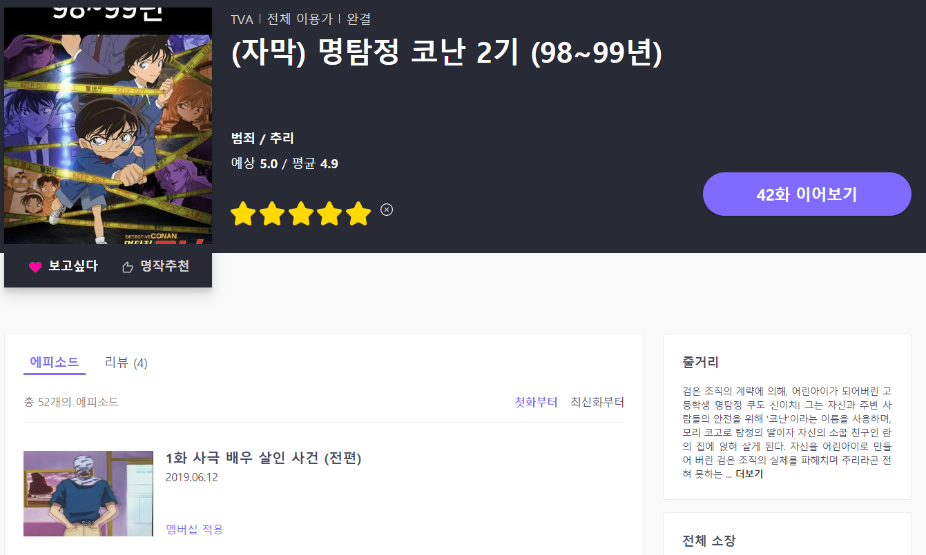 1412 [라프텔] 『(자막) 명탐정 코난 2기』 업로드 [애니] 작성일시 : 2019. 06. 12 (22:38) 조회 : 2,820 / 댓글 : 1 명탐정 코난 2기 출처(링크) : https://laftel.net/item/39334 5추천 글쓰기스크랩 신고