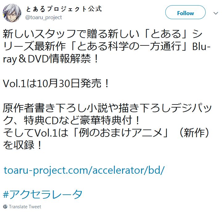 TV 애니메이션 '어떤 과학의 일방통행' 블루레이 발매 소식