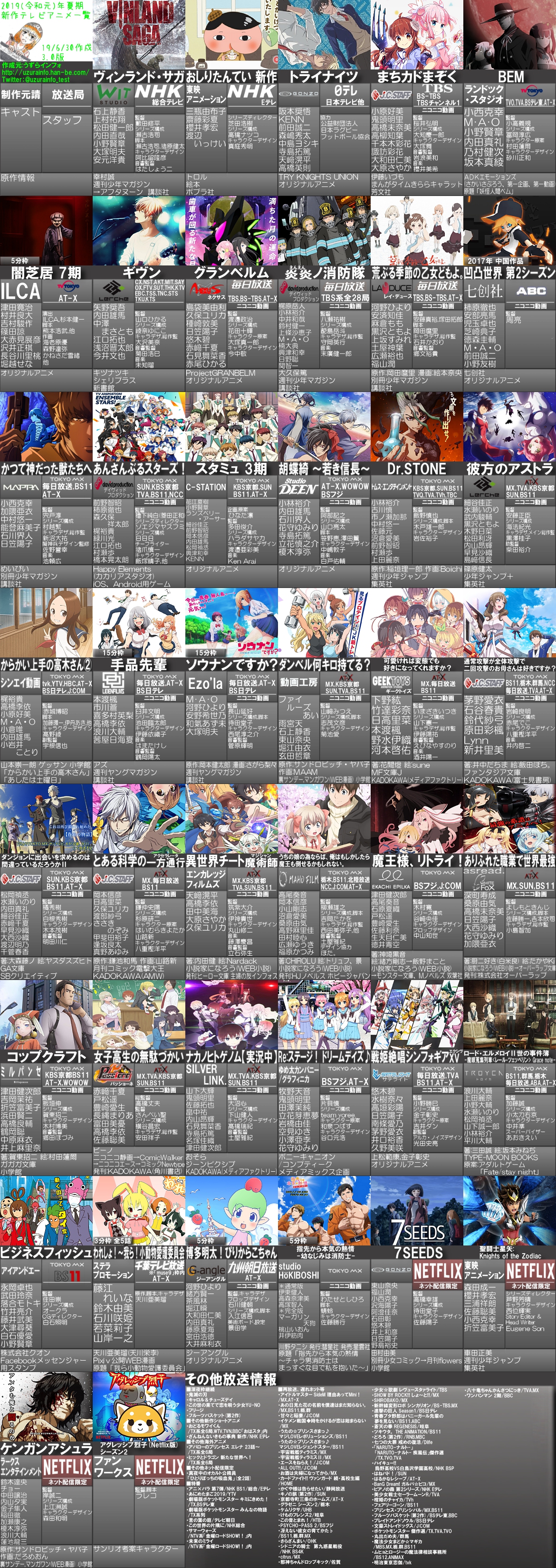 * 2019년 여름 (7월) 시즌 신작 애니메이션 비공식 목록