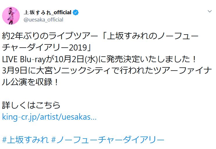 (출처: https://twitter.com/uesaka_official/status/1155026865876172800)