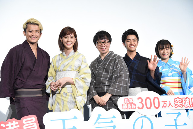 극장 애니메이션 '날씨의 아이'의 대히트 감사 무대 인사가 개최된 모습