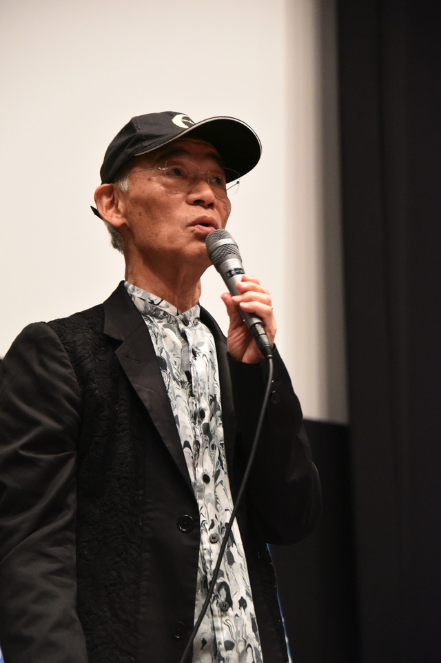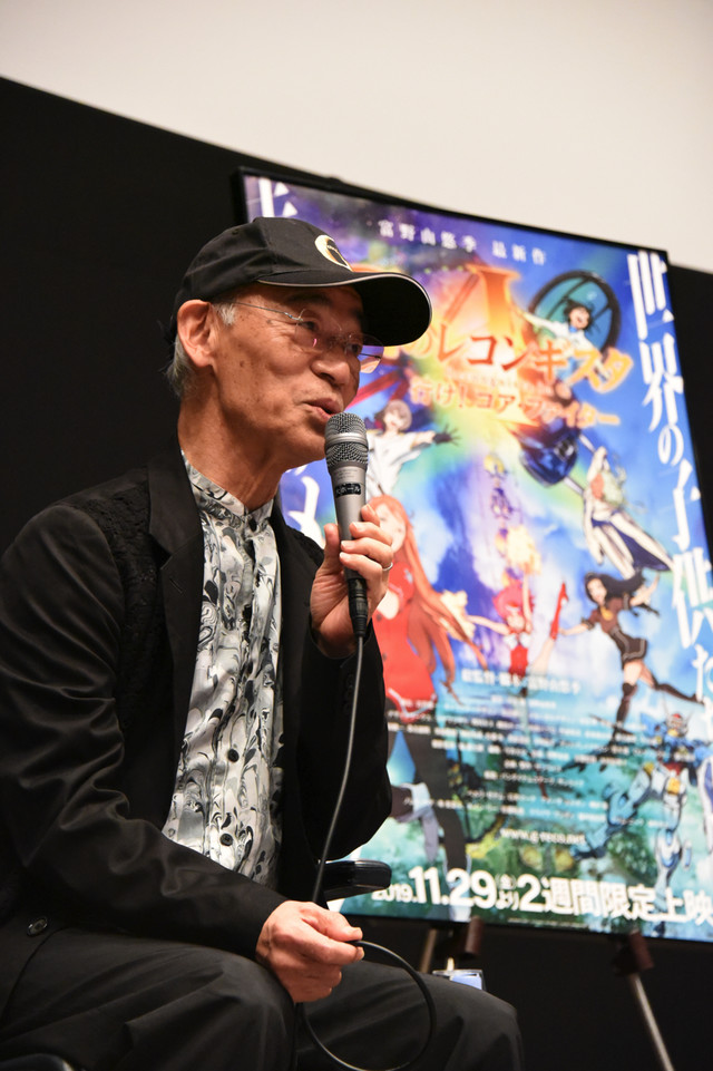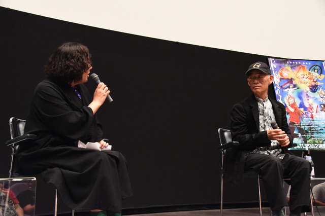 극장판 건담 G의 레콘기스타 선행 상영 이벤트의 토크쇼에 참석한 토미노 요시유키 감독의 사진