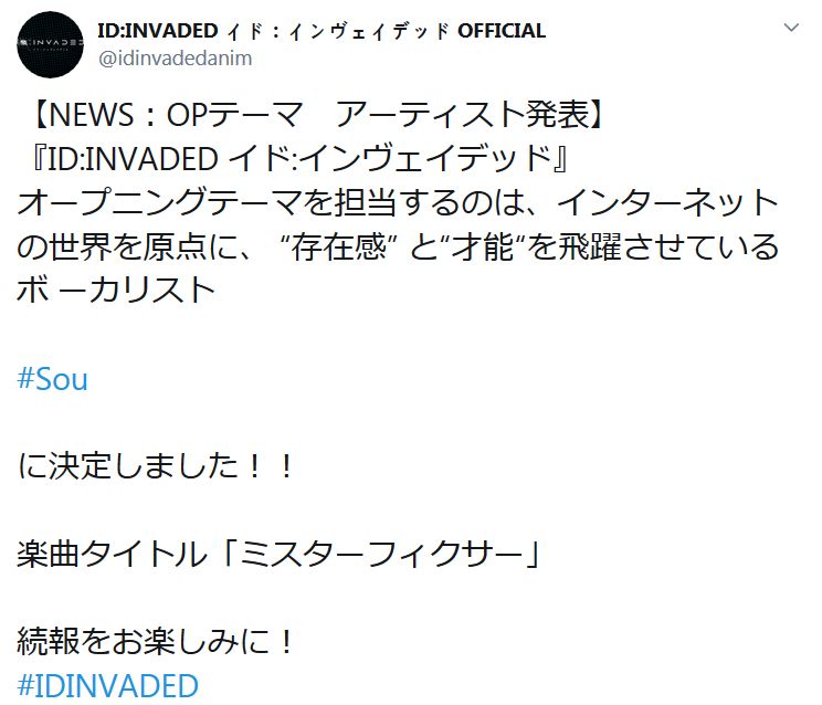 TV 애니메이션 'ID: INVADED 이드: 인베이디드' 오프닝 테마곡 정보 발표