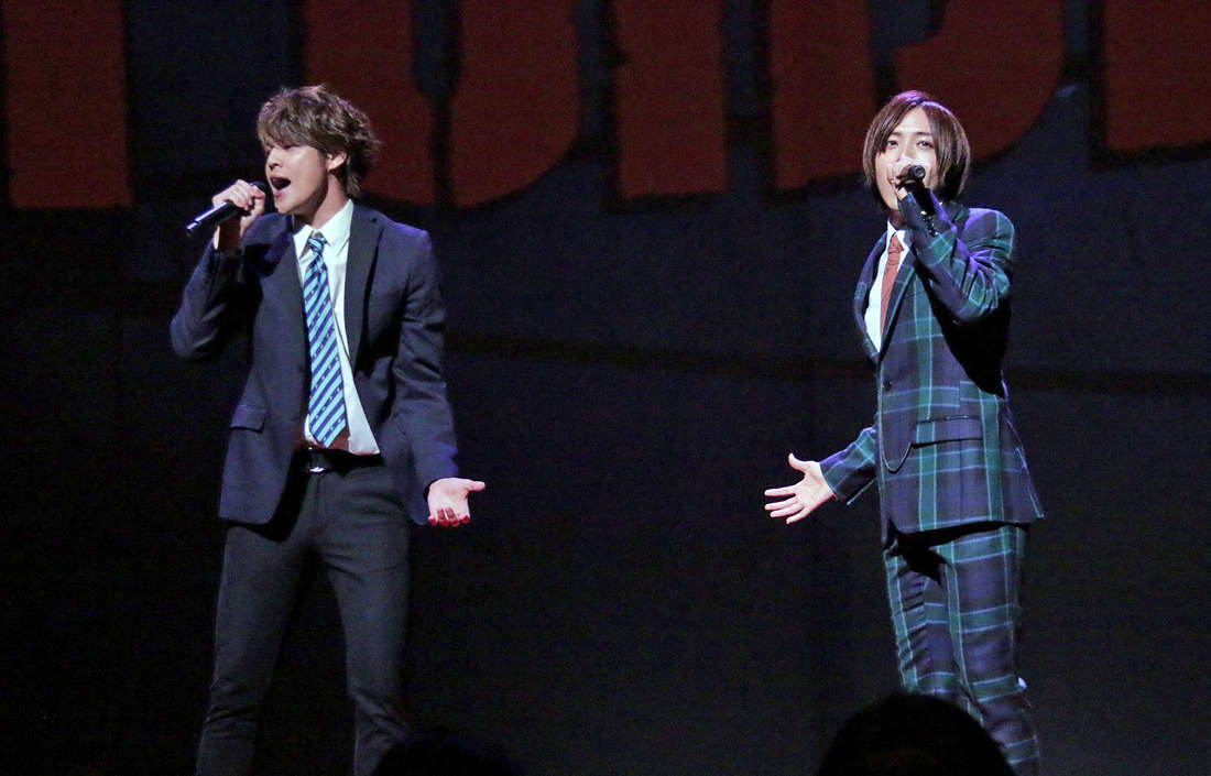 성우 미야노 마모루와 아오이 쇼타가 뮤지컬 '웨스트 사이드 스토리' 제작 발표에 등장한 모습