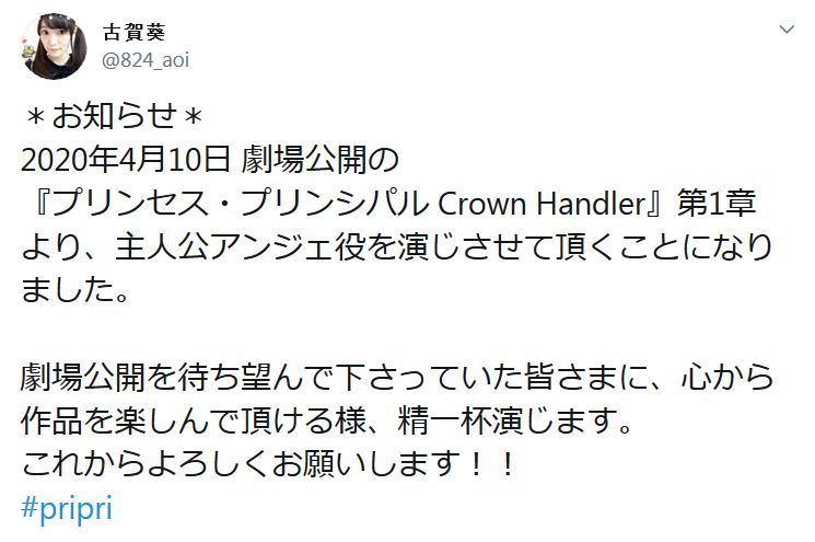 프린세스 프린서플 완전 신작 극장판 제 1장, 2020년 4월 10일 개봉 예정