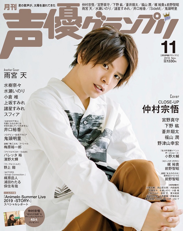 성우 그랑프리 2019년 11월호 표지 사진 샘플 공개, 성우 나카무라 슈고가 표지 장식