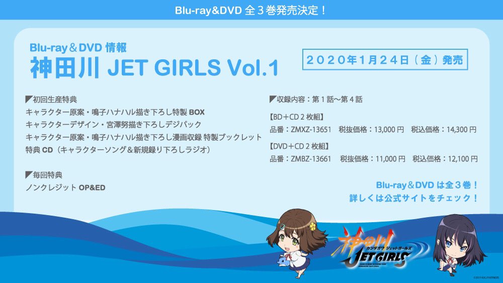 TV 애니메이션 '칸다가와 JET GIRLS' 블루레이는 전 3권, 2020년 1월 24일부터 발매 예정