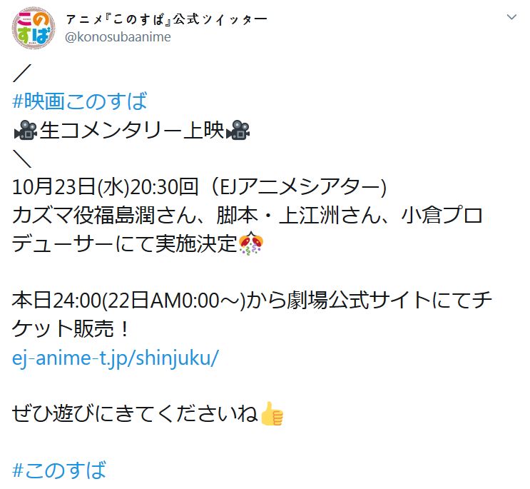 (출처: https://twitter.com/konosubaanime/status/1186207803473444864)