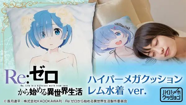 '리제로'의 캐릭터 '렘'의 수영복 차림 일러스트가 사용된 쿠션 발매 소식