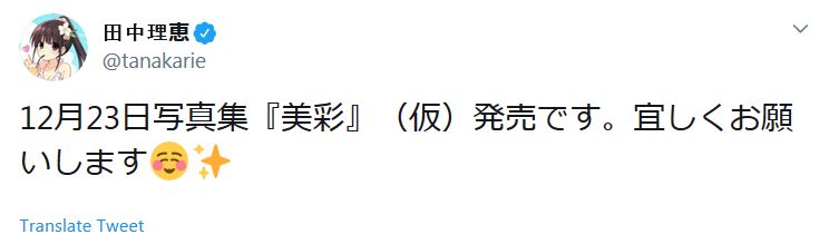 성우 다나카 리에씨의 사진집이 2019년 12월 23일에 발매될 예정이랍니다.