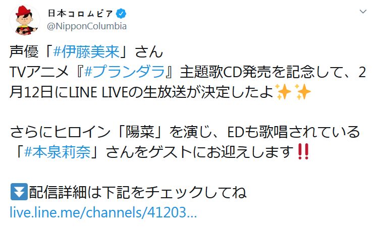 (출처: https://twitter.com/NipponColumbia/status/1222474616968318977)