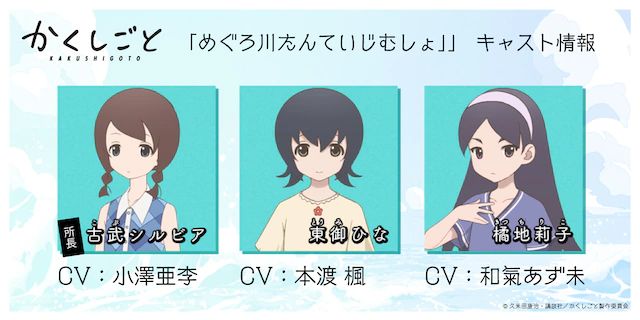 TV 애니메이션 '카쿠시고토'의 추가 성우 캐스팅이 발표되었다고