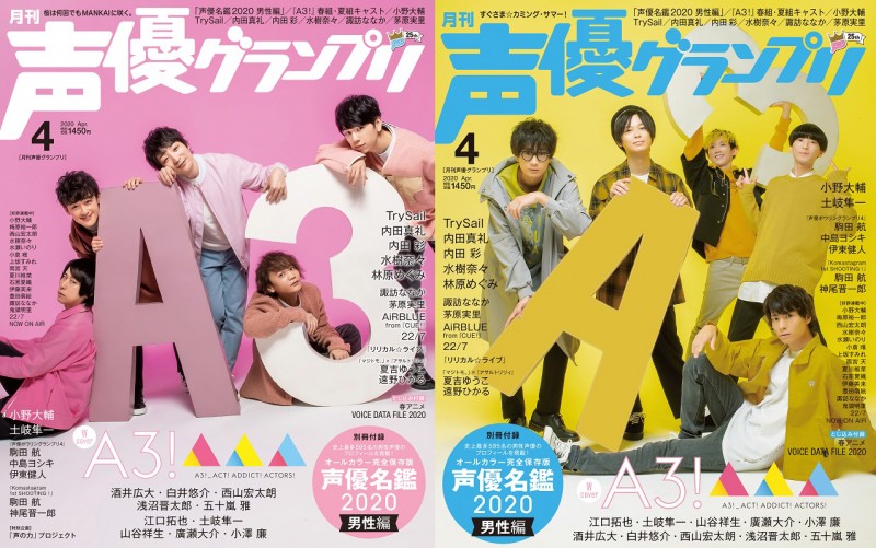 성우 그랑프리 2020년 4월호의 표지 사진 샘플 공개, A3! 성우 10명이 앞뒤표지 장식