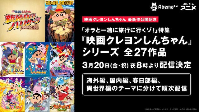 AbemaTV에서 극장판 크레용신짱 시리즈 전 27작품 순차 온라인 방송