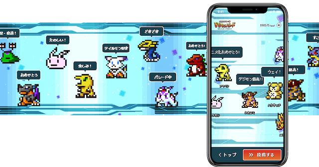 우선 스마트폰 전용 특설 사이트에서 도트 그림풍의 디지몬