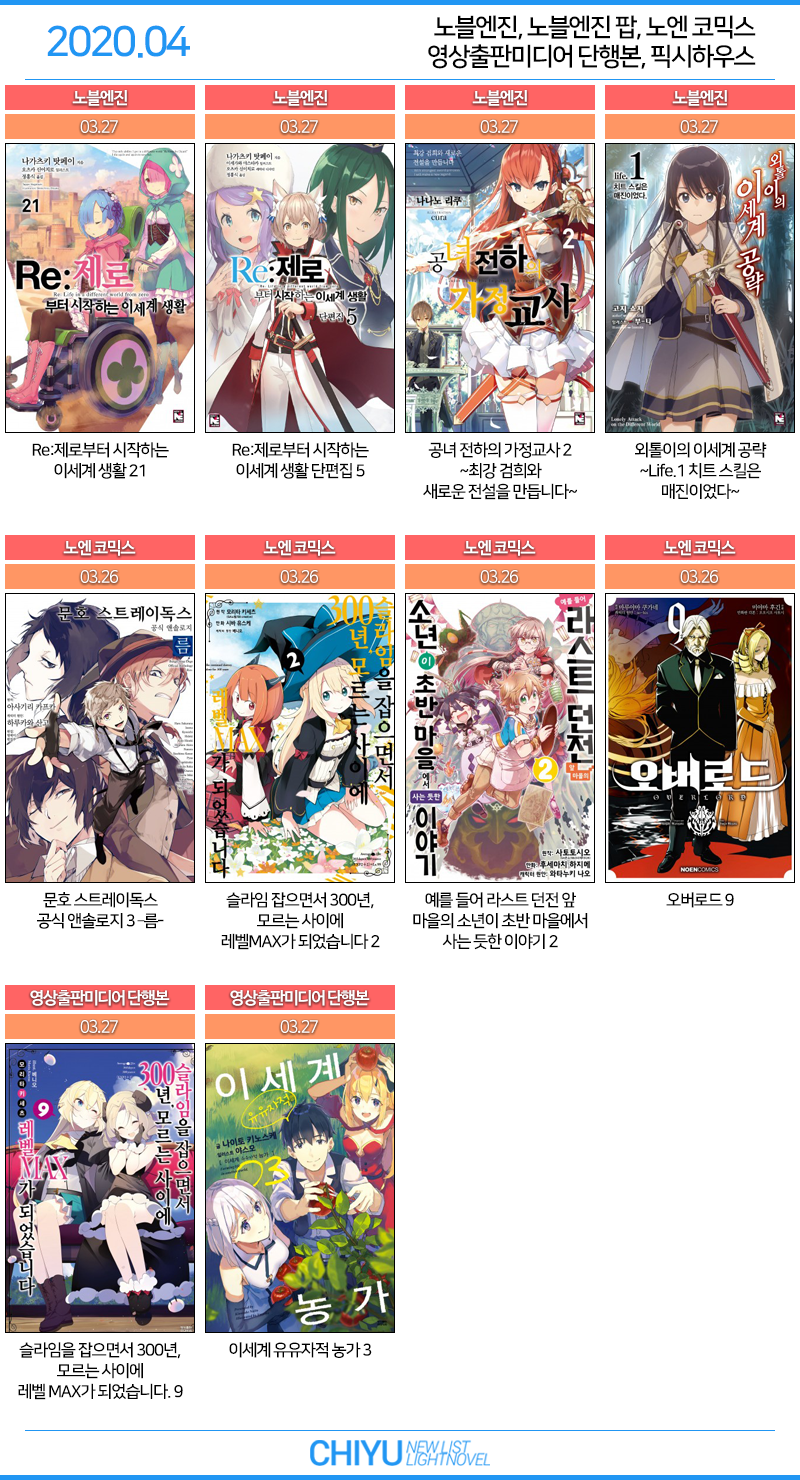 ※ 2020년 4월 라이트노벨 부록 : https://blog.naver.com/dkznt778/221890821263