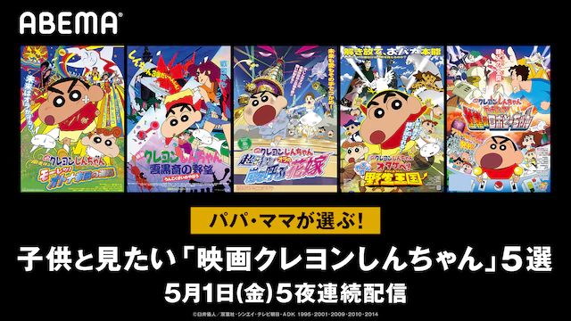 '극장판 크레용신짱' 5작품이 ABEMA 비디오에서 2020년 5월 1일부터 5일밤 연속 무료 방송