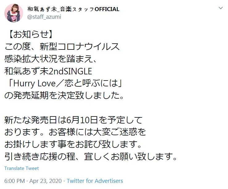 (출처: https://twitter.com/staff_azumi/status/1253247237410320384)