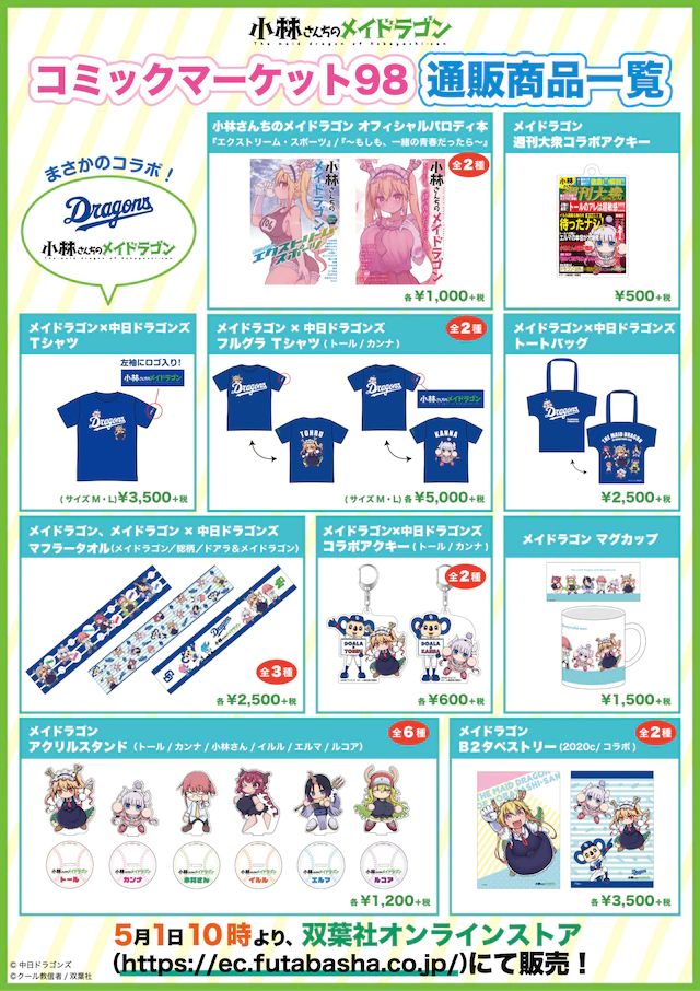'고바야시씨네 메이드래곤'의 신작 굿즈가 2020년 5월 1일부터 판매될 예정