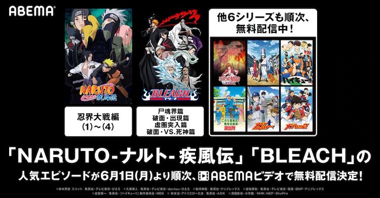 TV 애니메이션 '블리치'와 '나루토 질풍전'의 일부 에피소드가 ABEMA 비디오에서 무료 공개