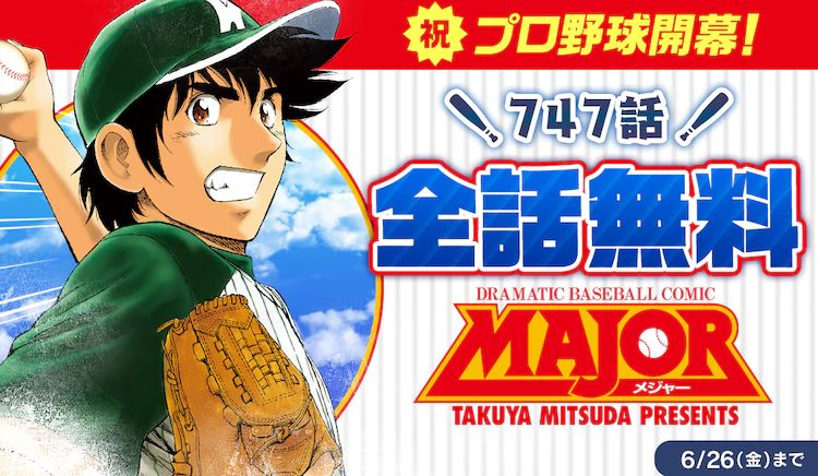 만화 'MAJOR'(메이저)의 전 에피소드가 '선데이 웨브리'에서 기간 한정 무료 공개중