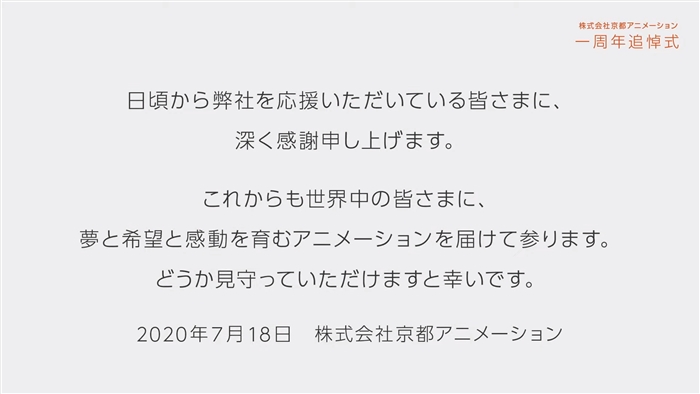 1년전에 발생한 교토 애니메이션 제 1스튜디오 방화 살인 사건 애도 영상 공개중