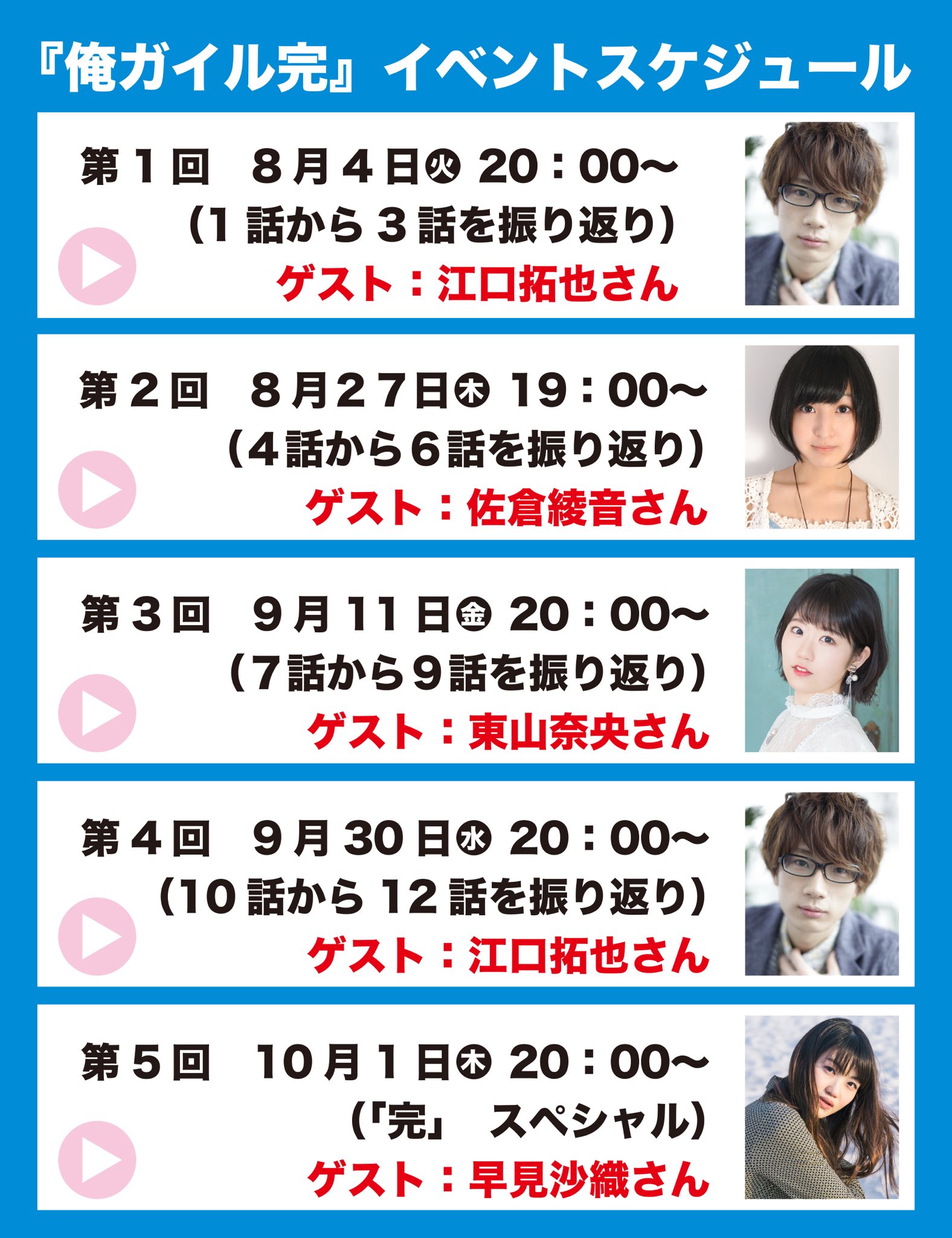 2020년 8월 4일에는 성우 에구치 타쿠야가 게스트로 출연하며, 8월
