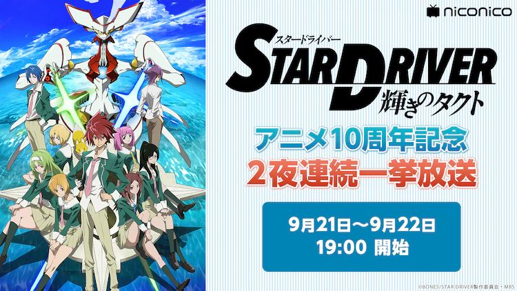 애니메이션 '스타 드라이버' 방송 10주년 기념, 니코니코 생방송에서 전 25화가 일거 방송 예정