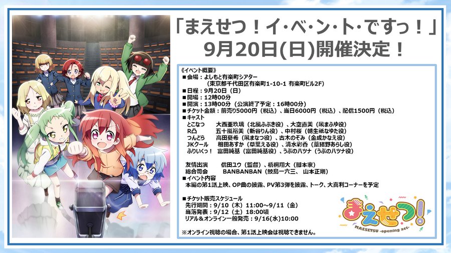TV 애니메이션 '마에세츠!'의 이벤트가 2020년 9월 20일에 개최될 예정