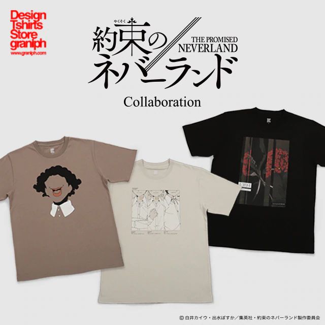 애니메이션 '약속의 네버랜드'와 '그라니프'의 콜라보레이션 티셔츠가
