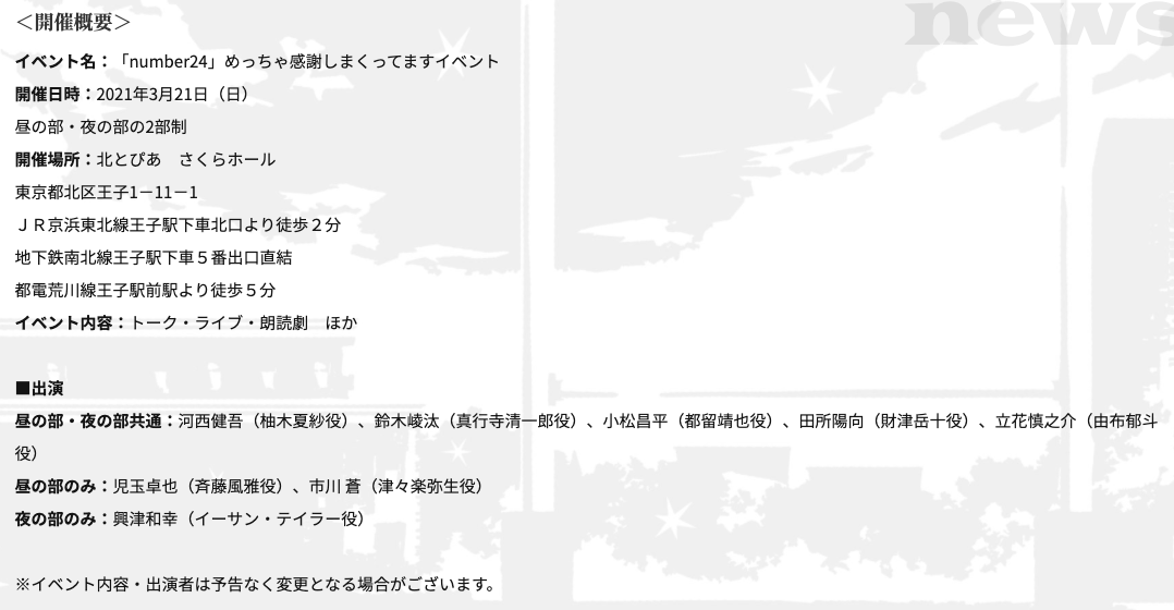 TV 애니메이션 'number24' 블루레이 최종권 발매 기념 이벤트 개최 소식