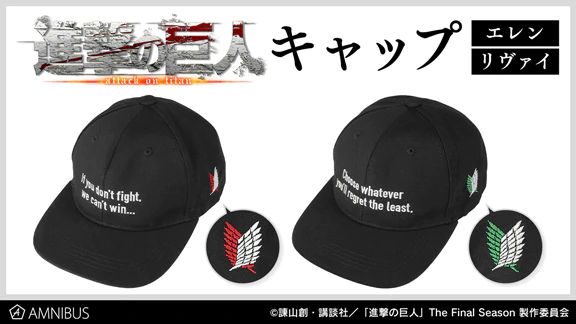 TV 애니메이션 '진격의 거인'에 등장하는 엘런과 리바이를 모티브로 하는 모자 발매 소식